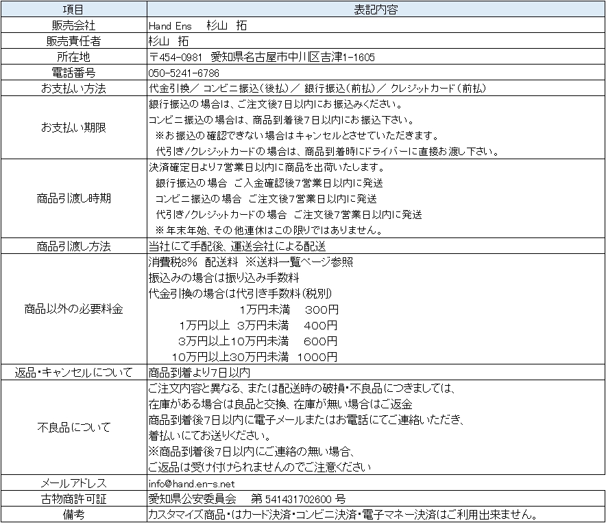 特定商取引法に基づく表記